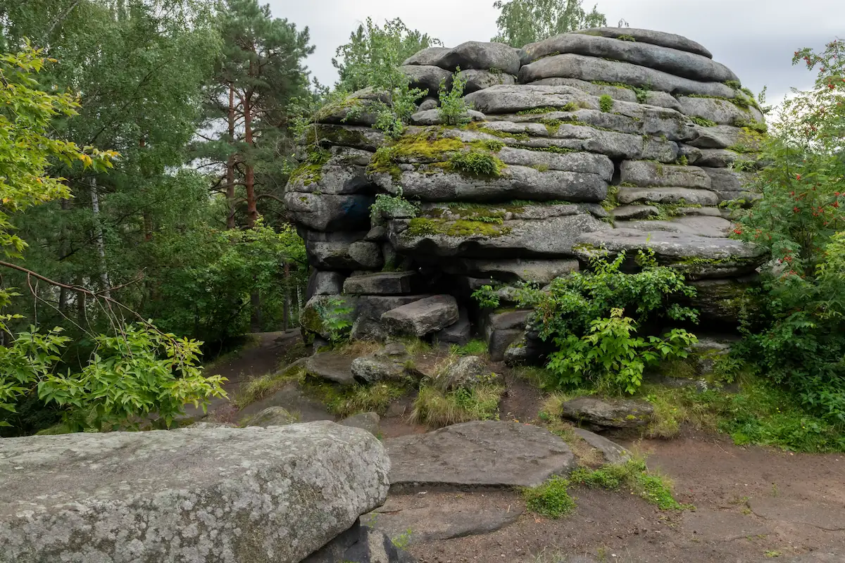 Местные рассказывают, что Шарташские каменные палатки — это не просто скалы, а остатки древнего святилища. Кто-то говорит, что здесь до сих пор можно почувствовать «место силы». Ну а Азов-гора, с её густыми соснами и каменными выступами, — идеальный антураж для баяновских легенд.